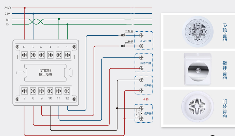 尼特NT8258输出模块(广播模块)接线图